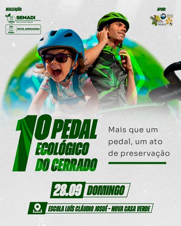 O 1º Pedal Ecológico do Cerrado é uma realização da Prefeitura de Nova Andradina, por meio da Secretaria Municipal de Meio Ambiente e Desenvolvimento Integrado, em parceria com o Programa Cerrado Circular e a Câmara Municipal, e promete unir esporte, lazer e consciência ambiental em um só pedal.