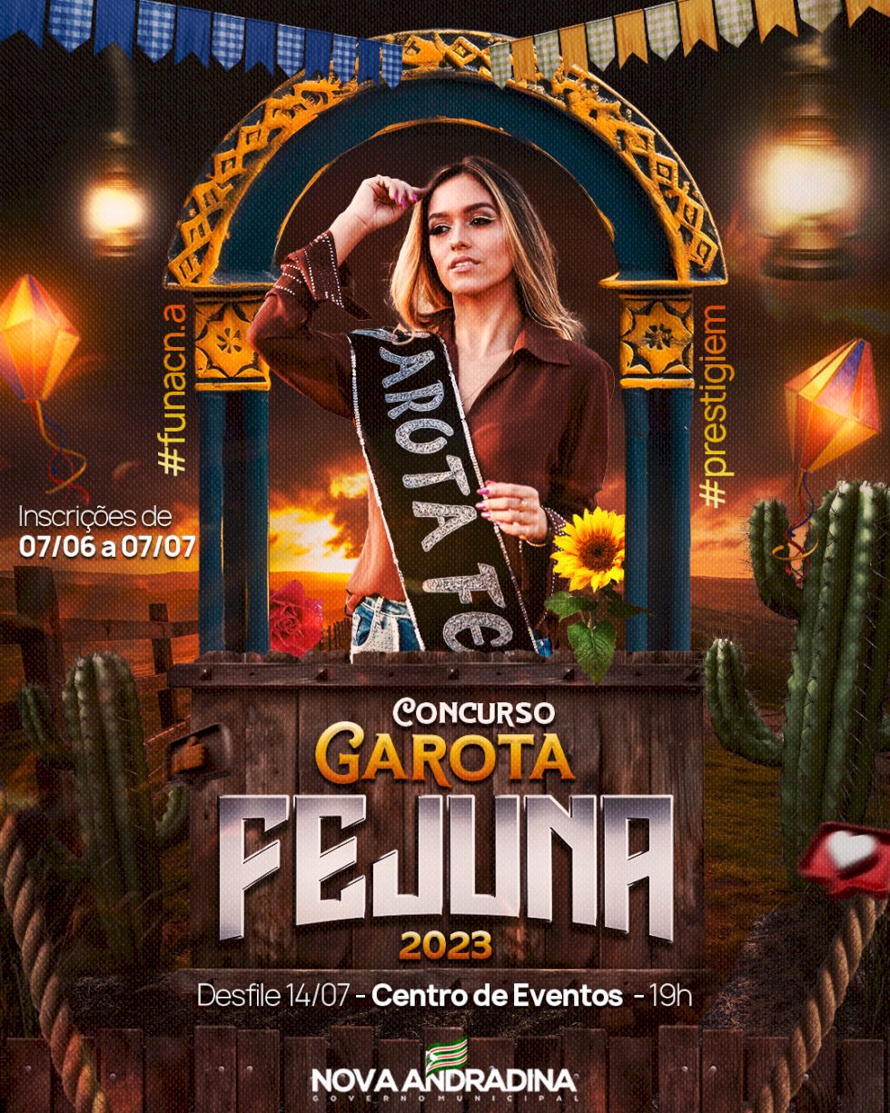 A Prefeitura de Nova Andradina, por meio da Secretaria de Educação e da Fundação Nova-andradinense de Cultura (FUNAC), tem o prazer de anunciar o Concurso Garota FEJUNA 2023, uma das atrações imperdíveis da tradicional festa junina da cidade. O evento será realizado no dia 14 de julho, no Centro de Eventos, marcando uma mudança significativa em relação aos anos anteriores, quando a festividade ocorria no Parque de Exposições.